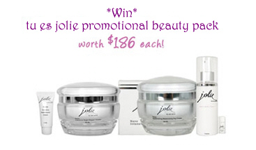 win tu es jolie promotion beauty pack worth $186 each.